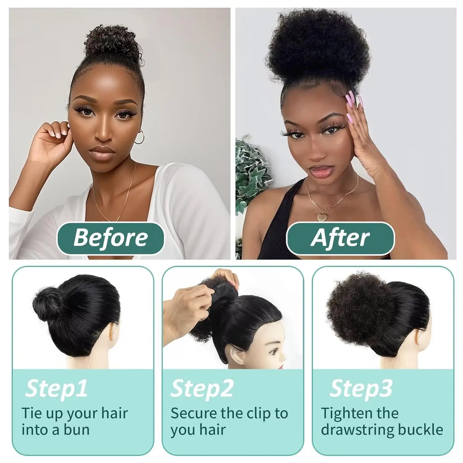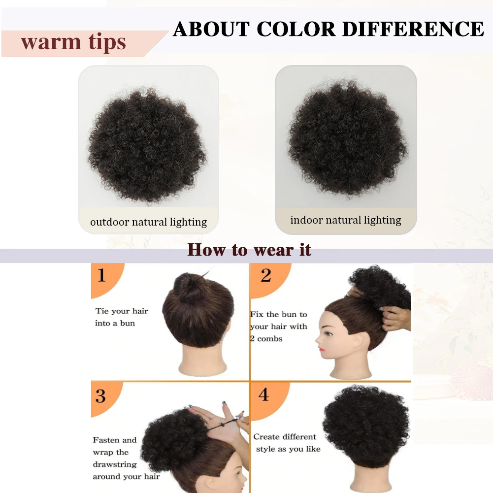 100% Human Hair Afro Kinky Puffs Drawstring Ponytail Extensions for Black Women 4# 99J 30 Kinky Curly Afro Puff Hair Accessories