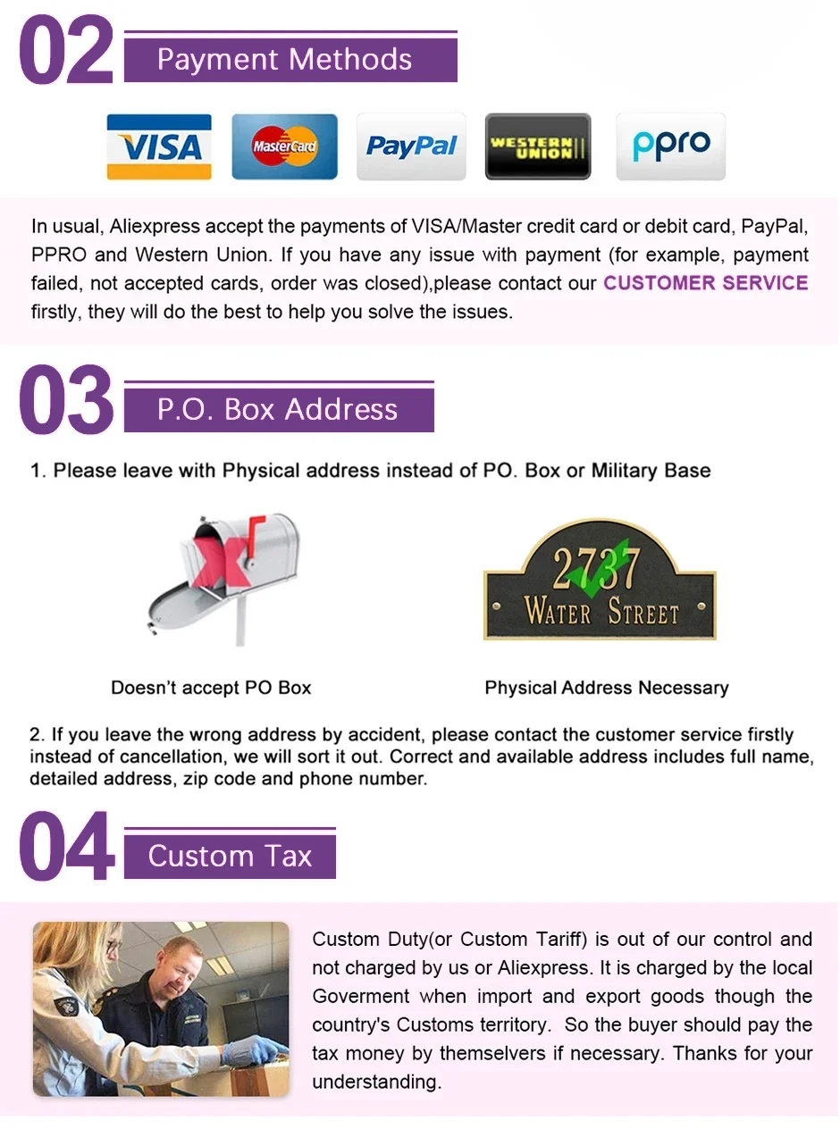A: AliExpress accept Credit Card, Bank Transfer (TT), Western Union, Money Bookers for payment detail. If payment failed, please contact us, we'll guide you how to pay.