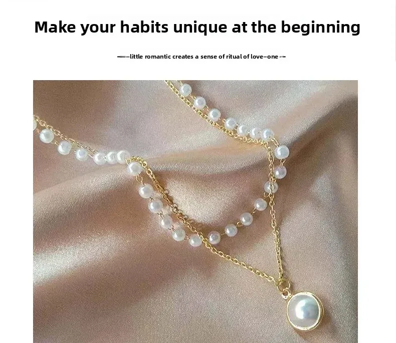 2025 New Women's Pearl Necklace Kpop Gold Color Beads Pendant Necklaces Goth Double Layer Chain Choker for Women Fashion Jewelry