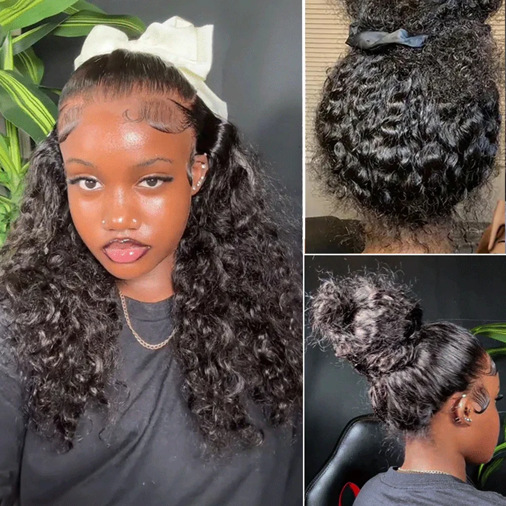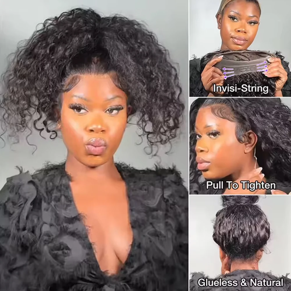 250 Density Hidden Strap 360 Full Lace Front Wig Human Hair Pre Cut Invisible Strap Deep Wave 360 Glueless Wigs with Drawstring