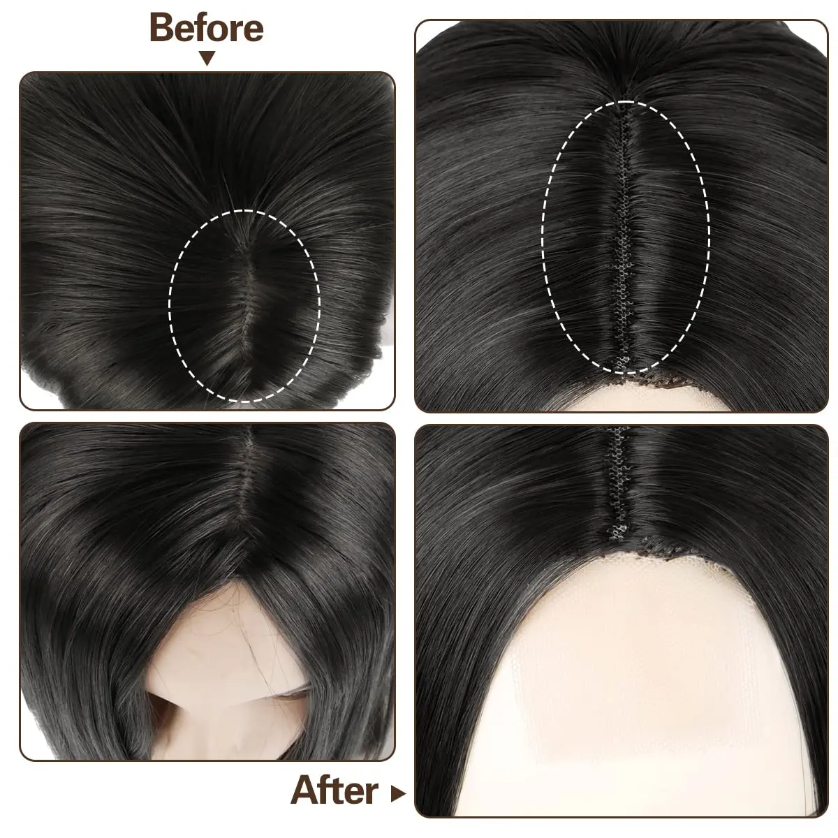Black Synthetic Wig Shoulder Length Bob Wig For Women In The Middle Part of The Straight Hair Natural Heat-Resistant Head Cover