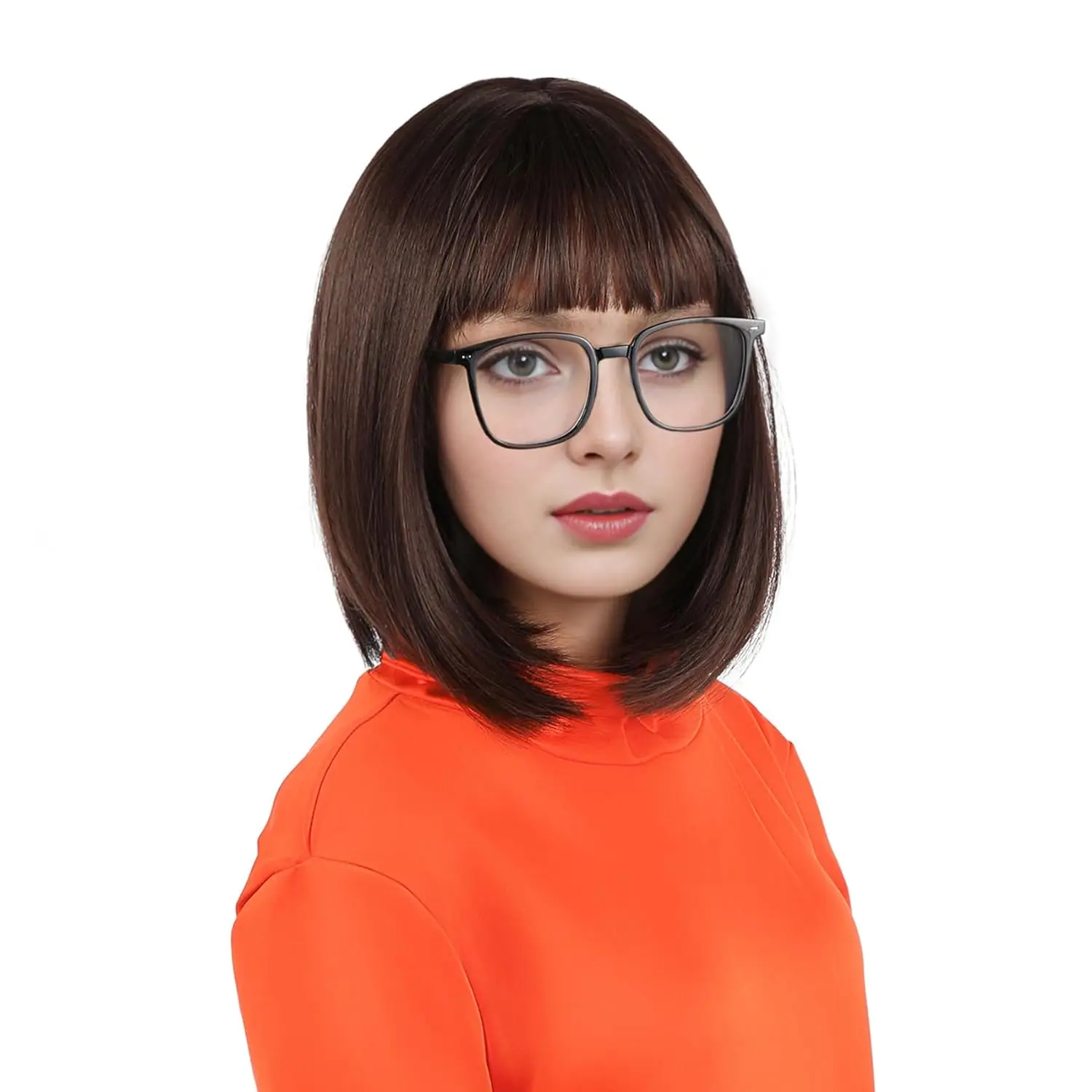 Brown Bob Wig With Bangs Synthetic Short Bob Wigs For Women Straight Bob Bangs Wig Heat Resistant Hair For Cosplay Daily Party