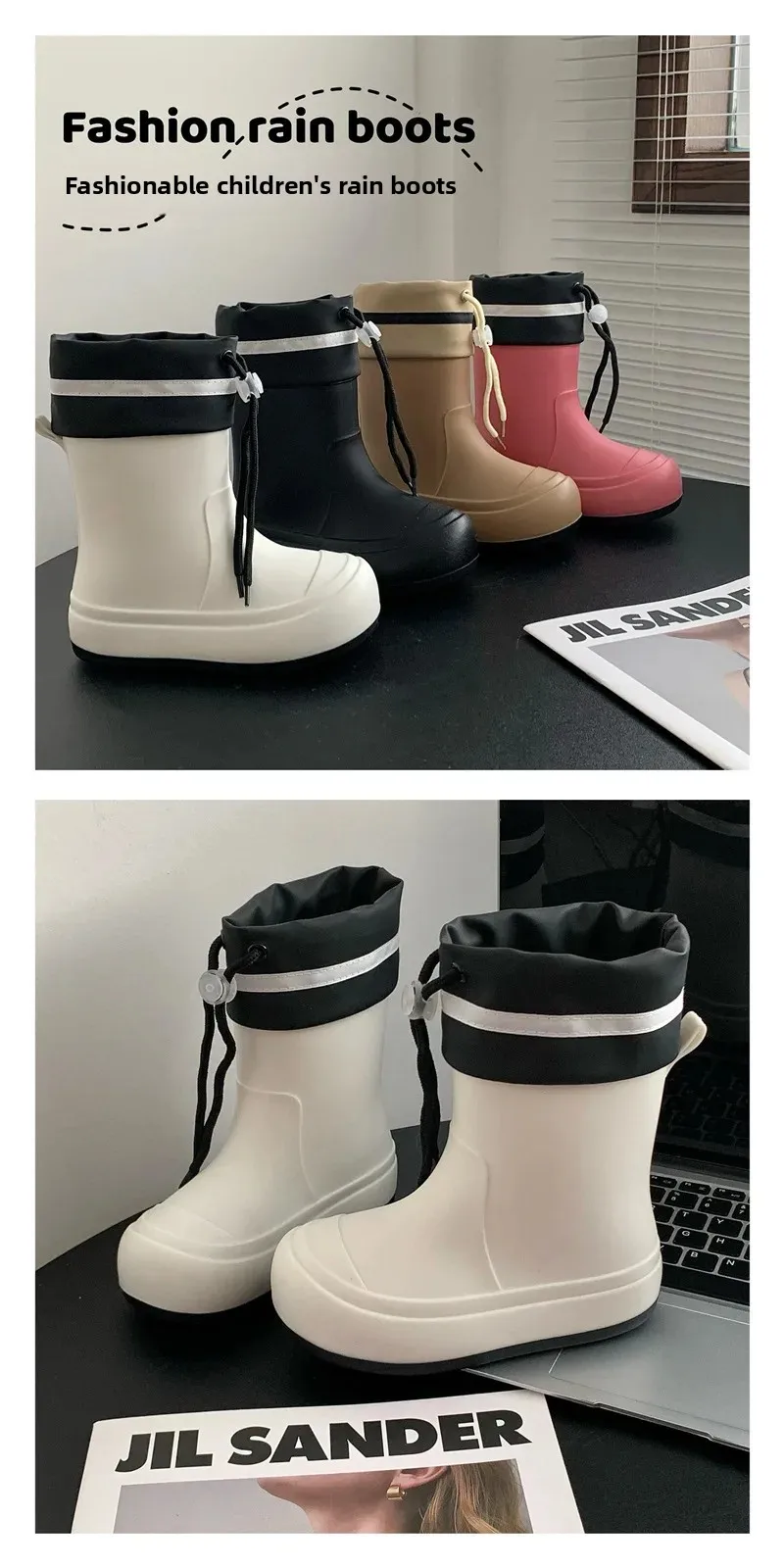 Cute Mid-Calf Rain Boots Women's Student Fashion Casual Play Water Outdoor School Shoes Parent-Child Rain Shoes PVC Material