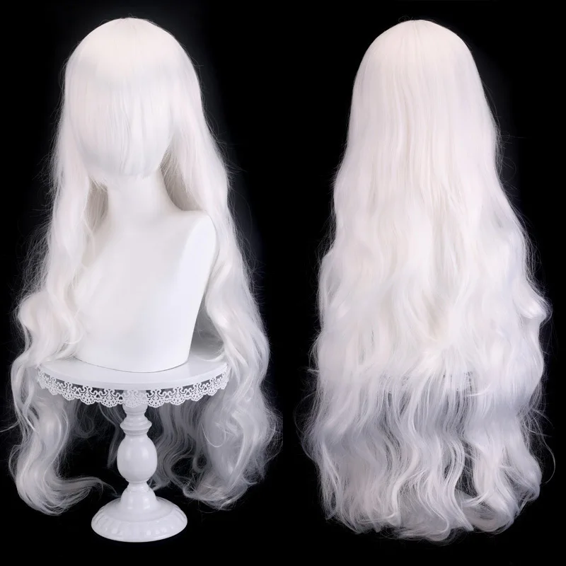 Diagonal Bangs Curly Long Wave Wig for Women Heat-resistant Fiber Synthetic Wig for Daily Cosplay