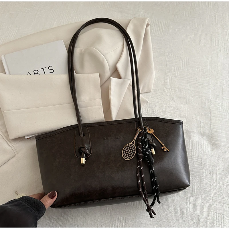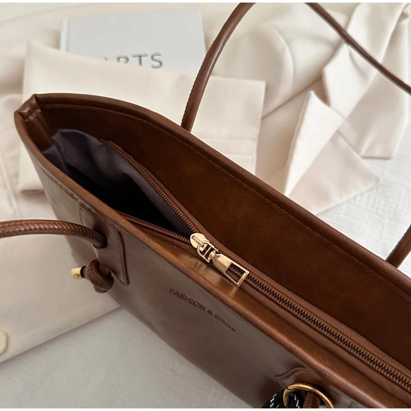 European American Retro Tote Bag, Korean Fashion Shoulder Bags Advanced Simple Handbag New Large Capacity Pendant Versatile Bags