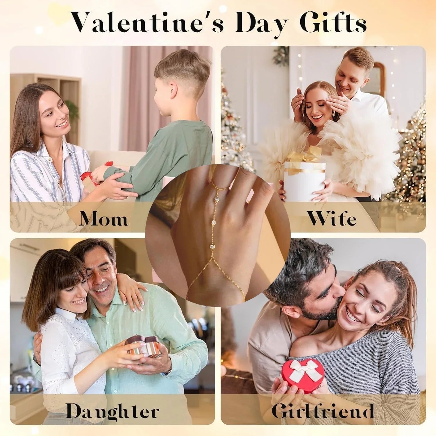 Gold Hand Chain for Women Gold Plated Bracelets for Women Silver Bracelets Hand Chain, Silver Jewelry Gifts for Women Christmas