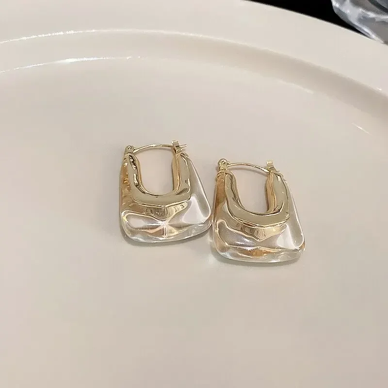 Green Vintage U Shaped Resin Earrings for Women Girls Geometric Irregular Stud Earrings 2025 New Trendy Party Ear Jewelry Gift
