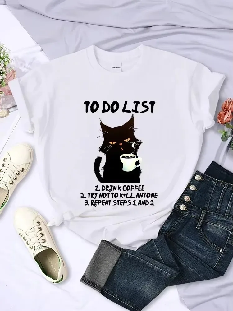 I Want Coffee T Shirt Women Funny Cat Tshirt Summer Short Sleeve Y2k Tops Fashion Hip Hop Tees Clothes