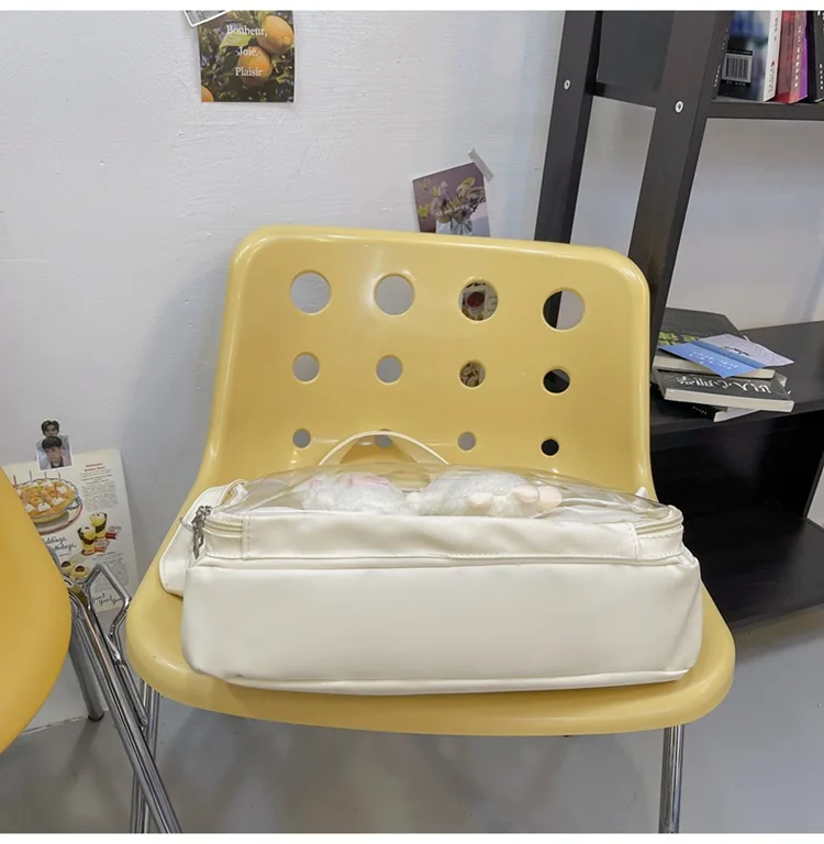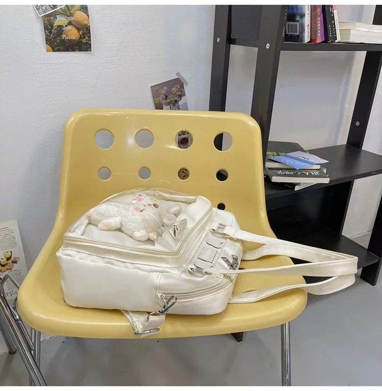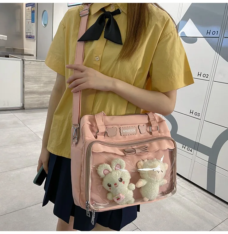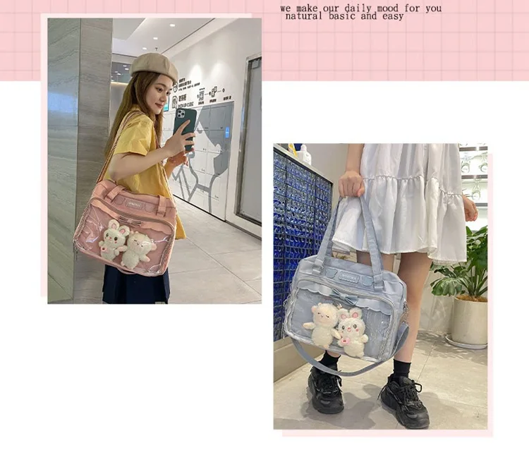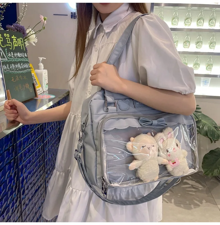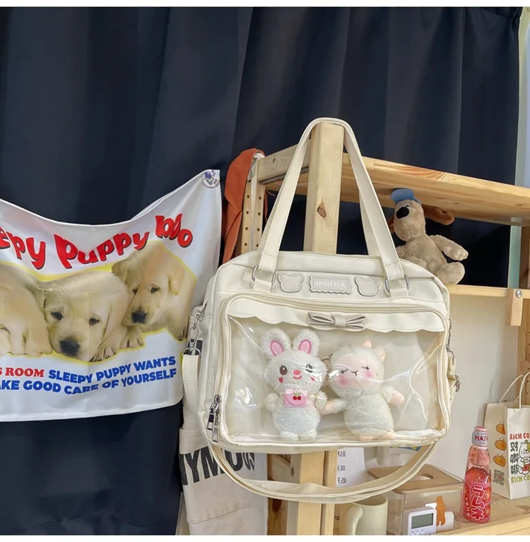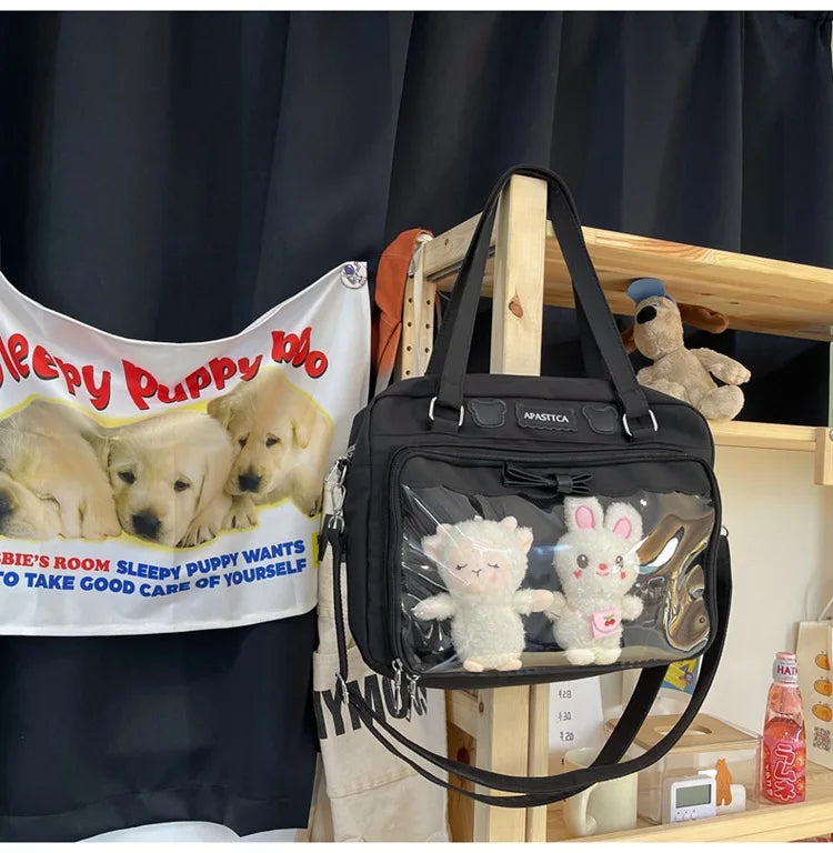 Japanese Cute Transparent Canvas Itabag Fashion Girls One Shoulder Bag Student Personality Crossbody Bag with Badge Doll Ita Bag