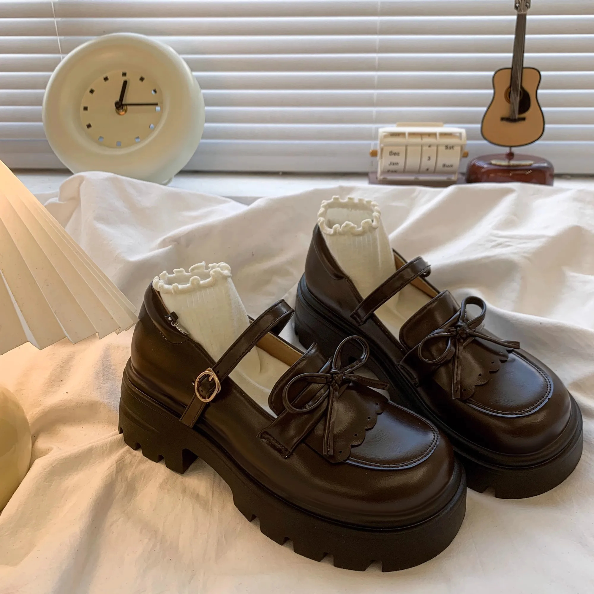 Kids Shoes Black Leather Mary Janes Girls Shoes Bow Thick Sole Casual Party Shoes Toddler Little Girls Fashion Footwear Shoes