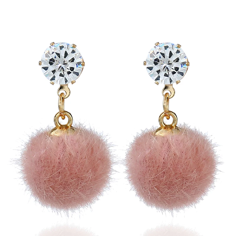 Korean Sweet Hair Ball Dangle Earring For Women Jewelry Pink Red Crystal Female Personality Simple Pink Plush Fur Brincos Gift