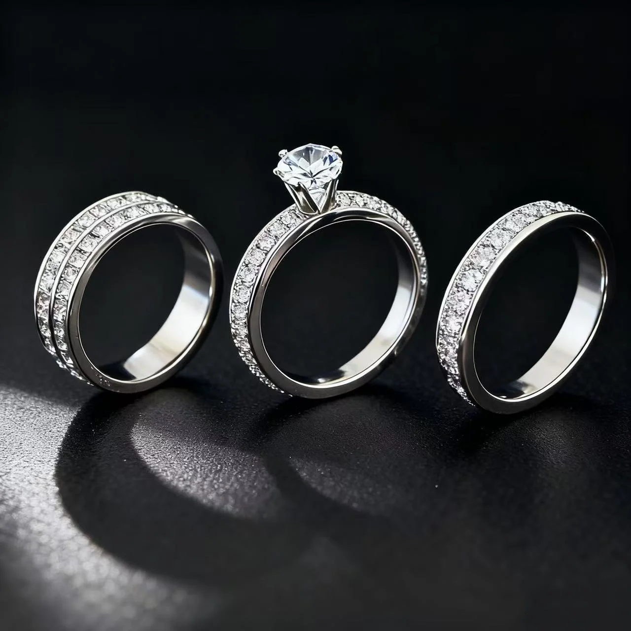 Luxury Zircon Stainless Steel Ring Set For Women 2025 Trend Finger Fashion Jewelry Accessories
