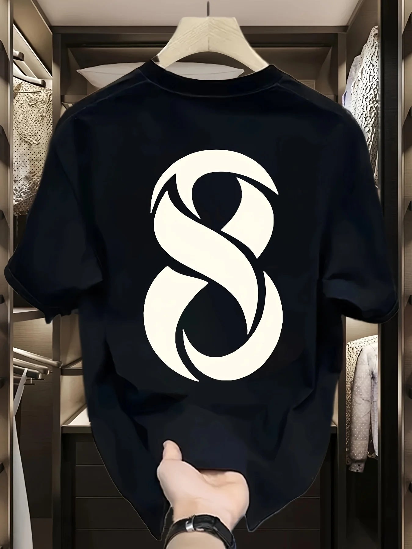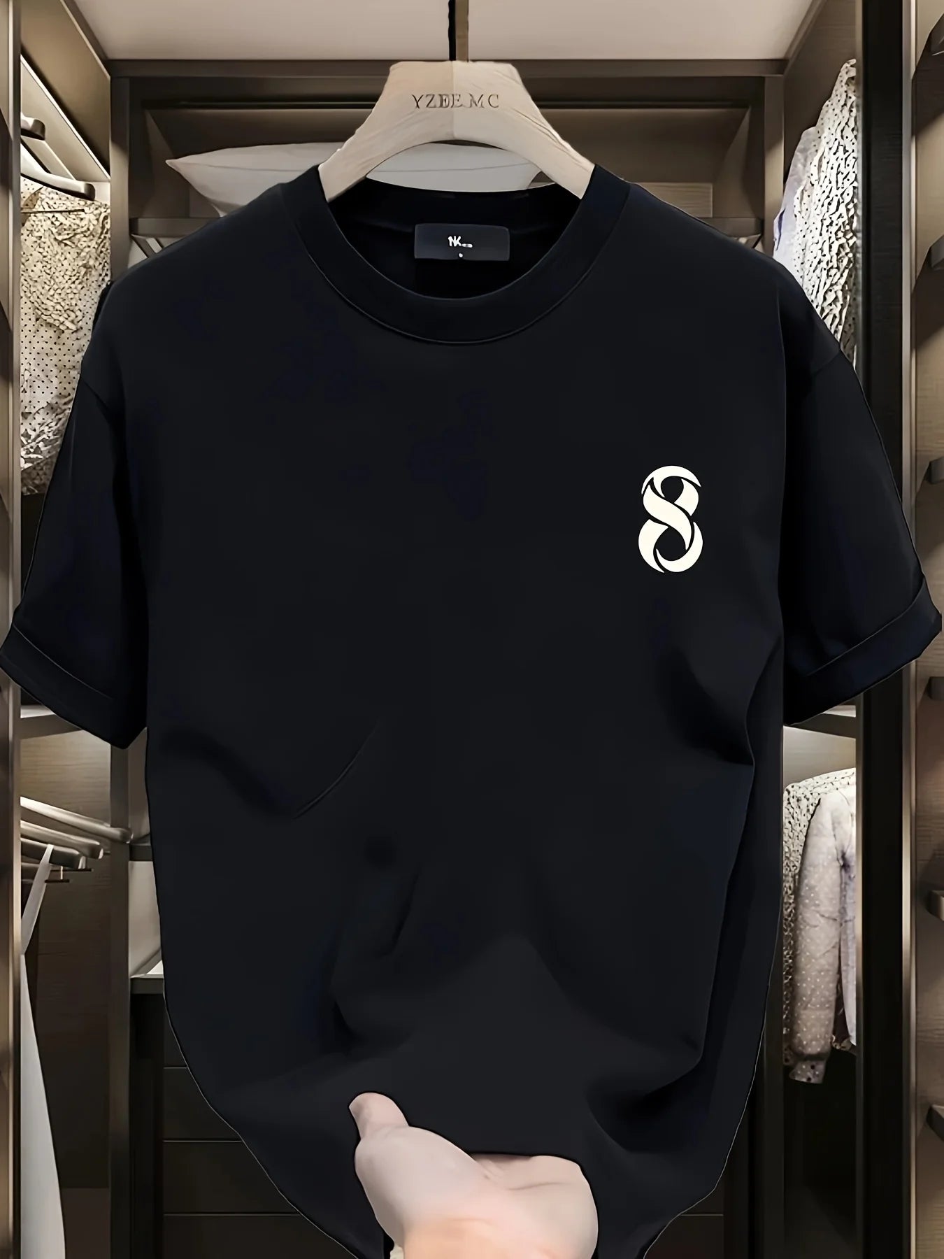 Men's 100% pure cotton fashionable casual loose sports trendy brand pattern printed round neck short sleeved T-shirt top