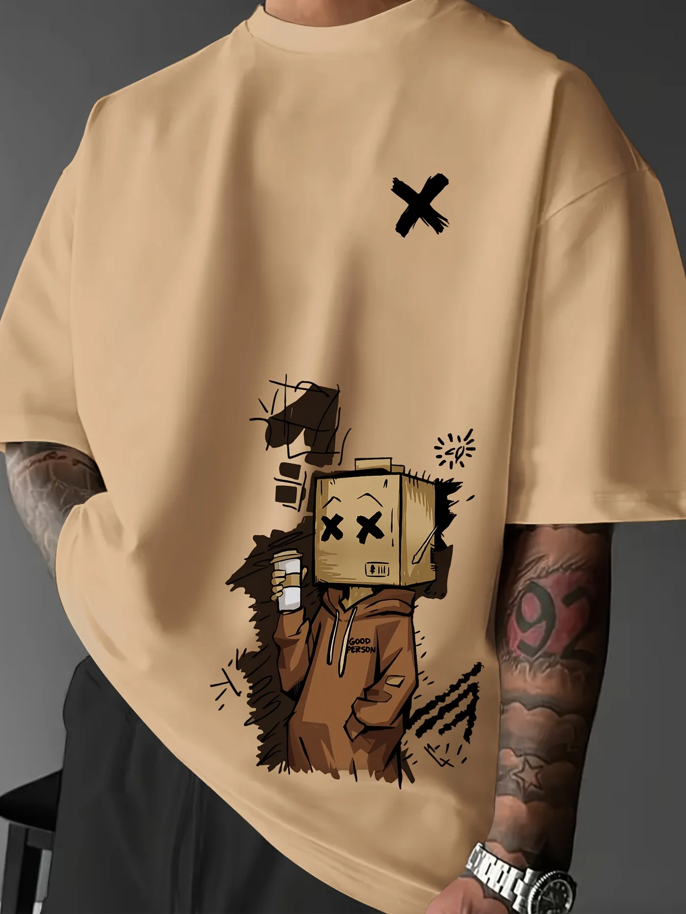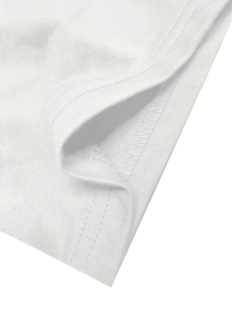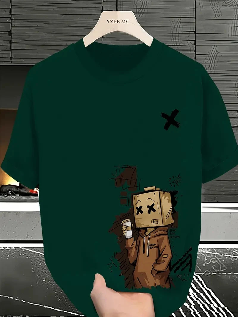 Men's 100% pure cotton fashionable casual sports loose trendy doll graffiti printed round neck short sleeved T-shirt top