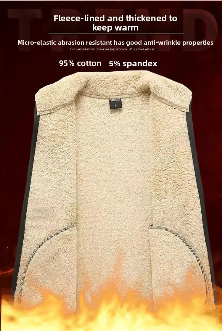 Men's Autumn Winter Lamb Velvet Set Thickened Fleece Casual Sports Outerwear And Pants Large Size Comfortable Dad Clothes