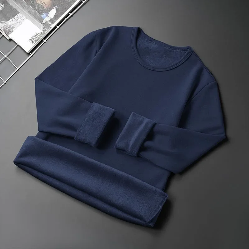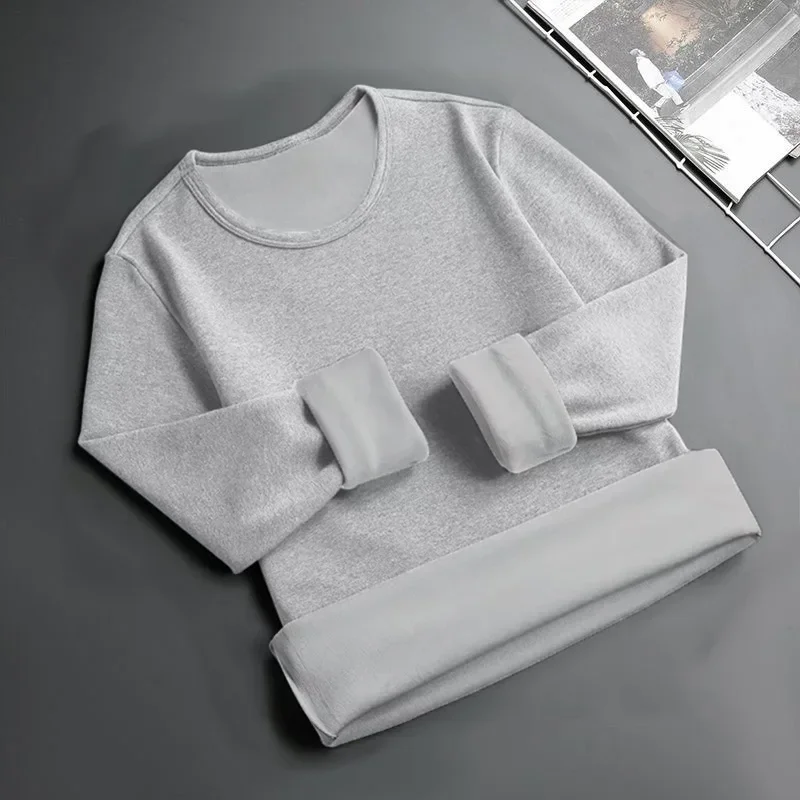 Men's Fleece Lined Thickened Long Sleeve T-Shirt round Neck Base Shirt Autumn Clothes Winter Long Sleeve Warm Underwear