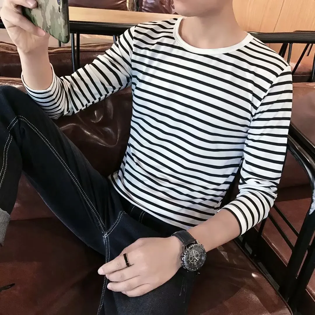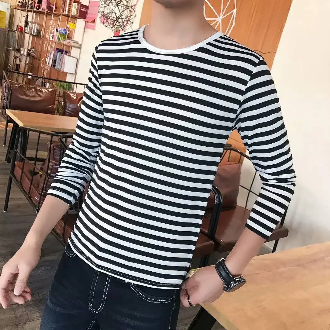 Men's Long Sleeve T-shirt 2020 Spring Autumn New Stripe Clothes Korean Trendy Basic Layer Top Autumn Wear For Men