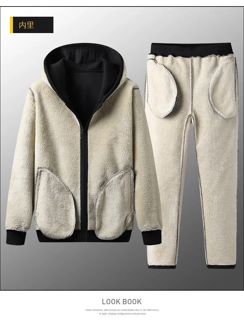 Men's Sportswear New Winter Autumn fleece Tracksuit 2 Piece Sets Sports Suit Jacket+Pant Sweatsuit Male Fashion warm Clothing