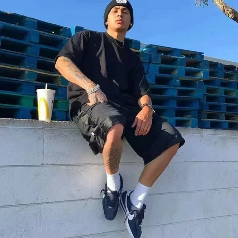Men's summer 100% cotton fashionable casual loose coconut tree pattern printed sports round neck short sleeved T-shirt top
