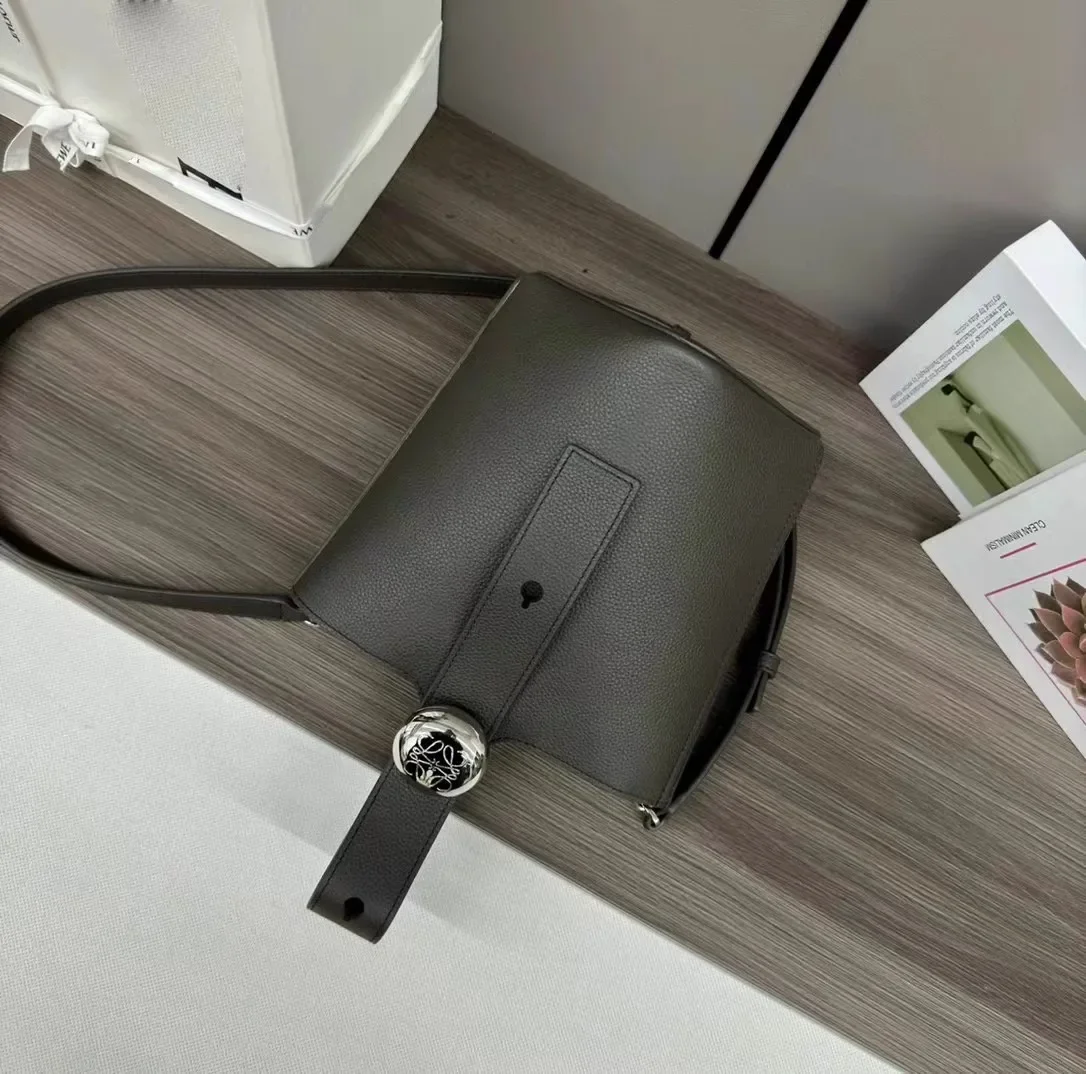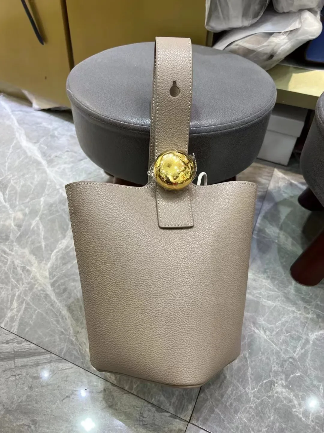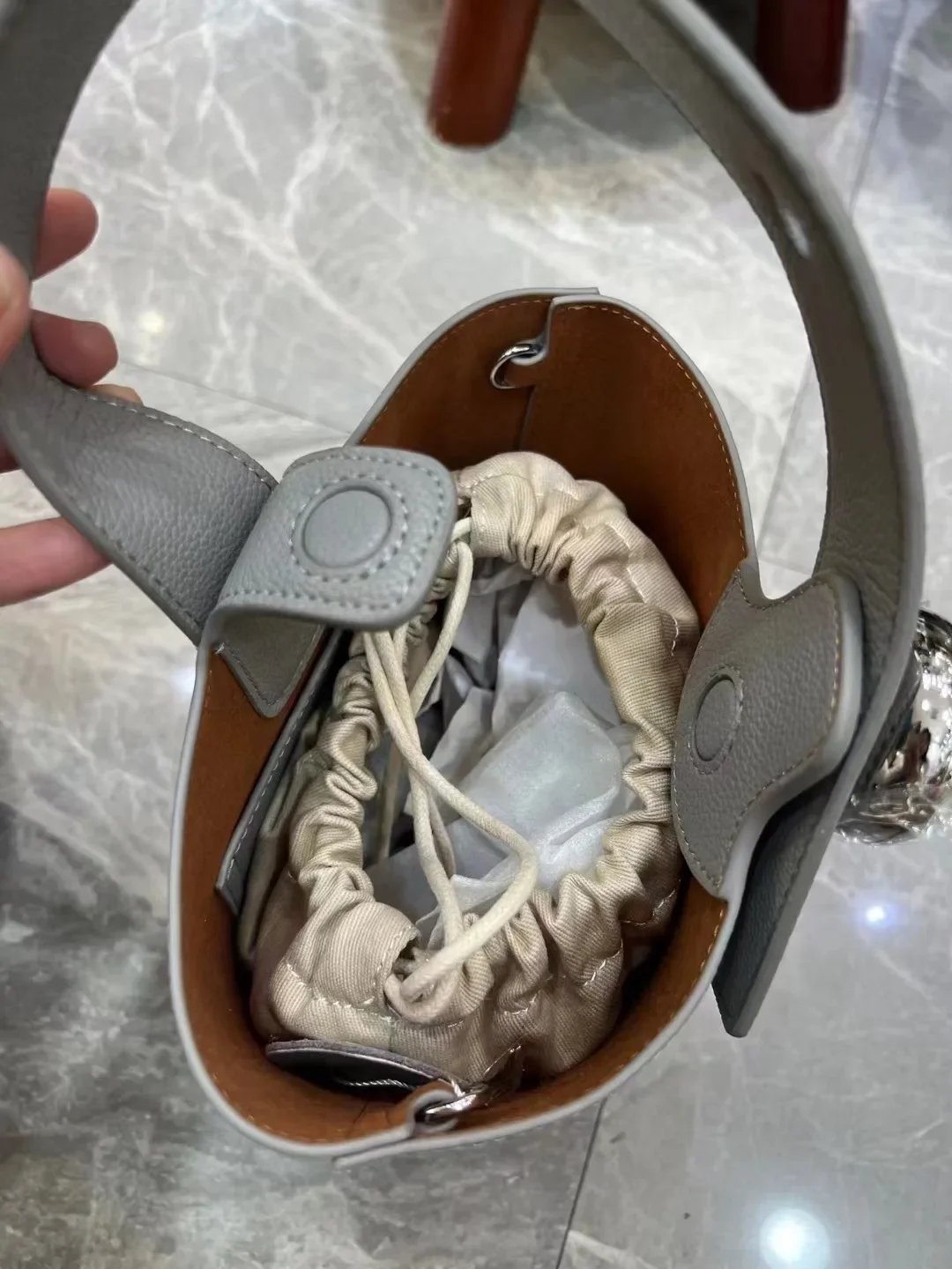 New 2025 Pure Color High-End Bucket Bag Leather Handheld Crossbody Commuter Shoulder Bag Neutral Minimalist Style Soft Shape