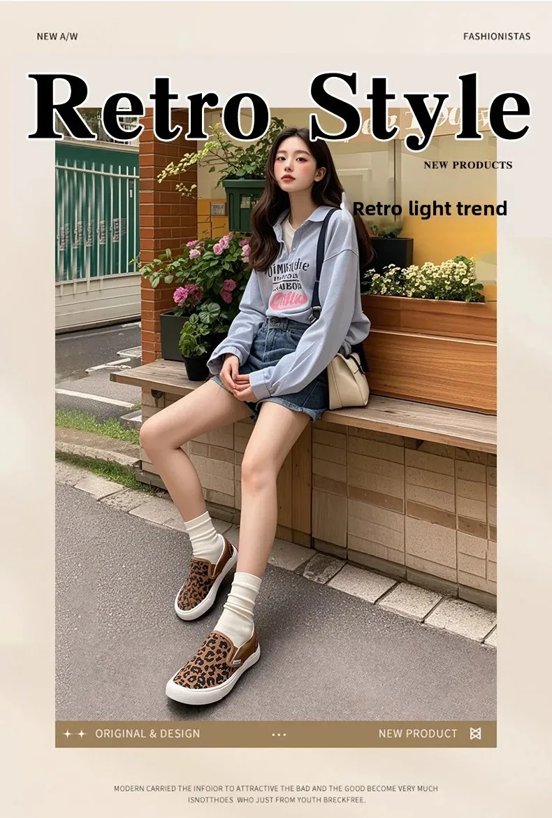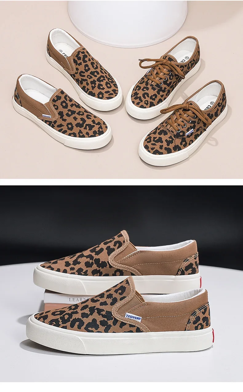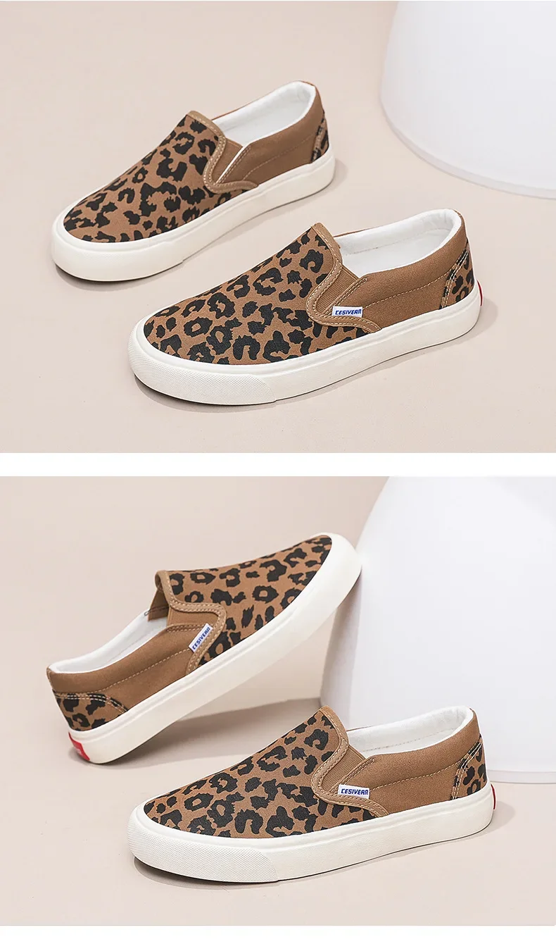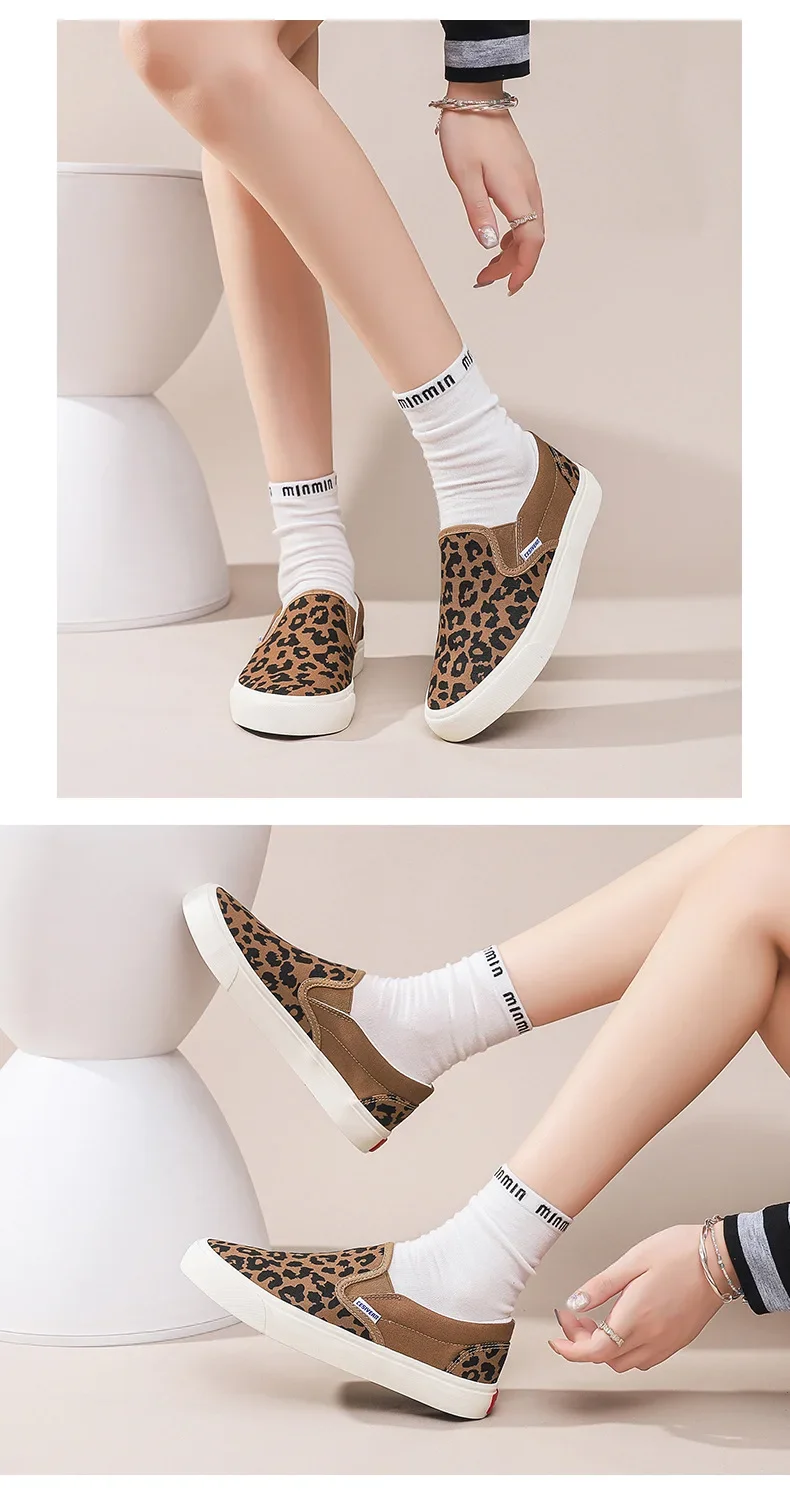 Retro Fashionable Canvas Shoes for Women Student Sports Casual Leopard Print Slip-On Sneakers Comfortable Cotton Lined Shoes