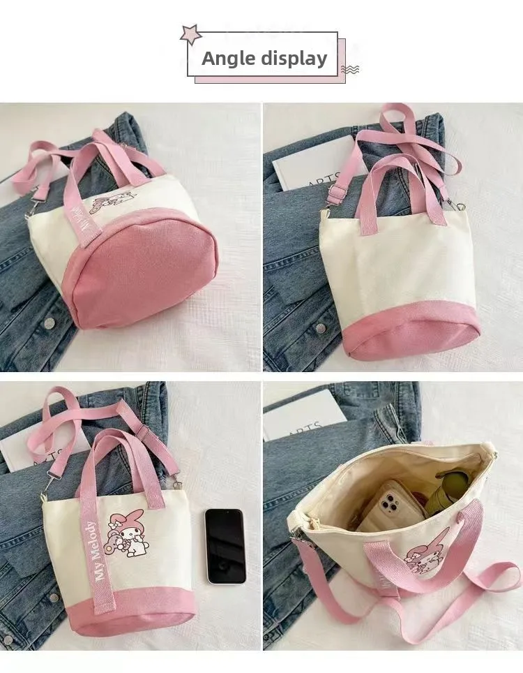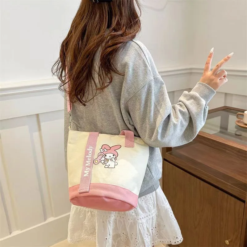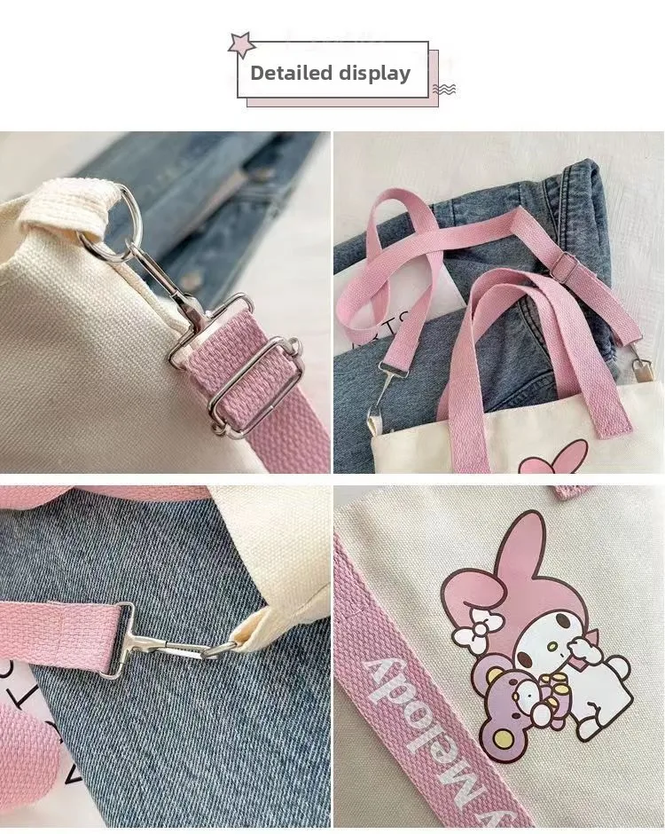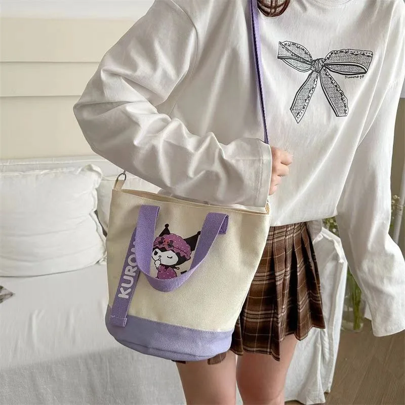 Sanrio Hello Kitty Kuromi Canvas Shoulder Bag Kawaii Anime Print Lightweight Crossbody Purse for Girl