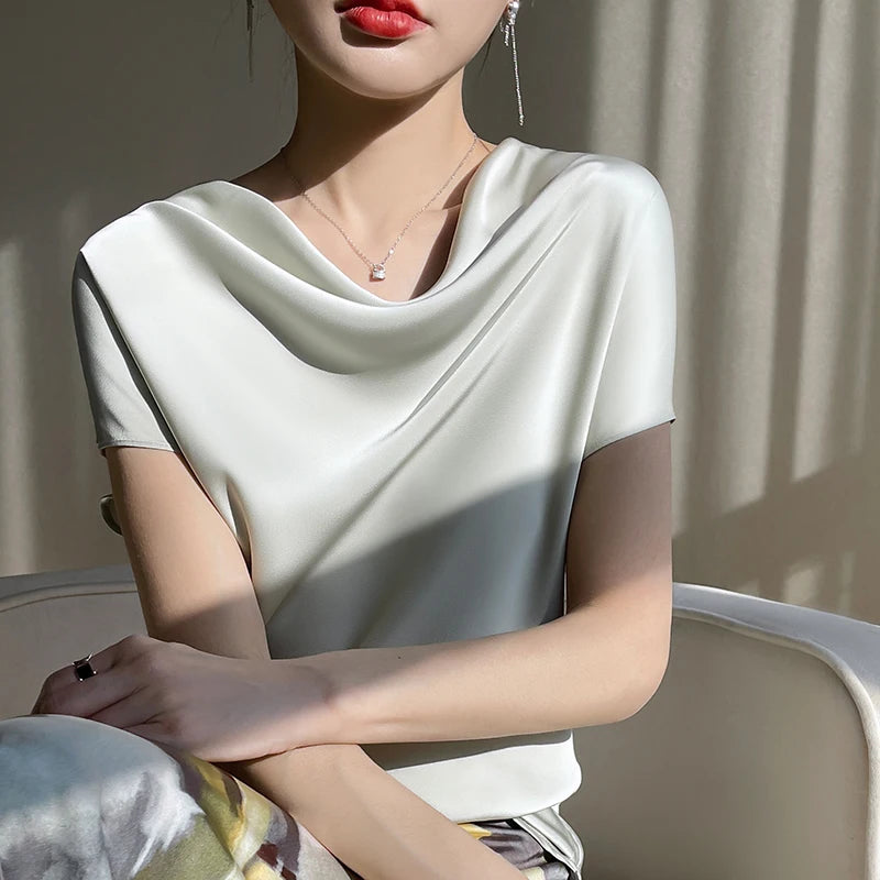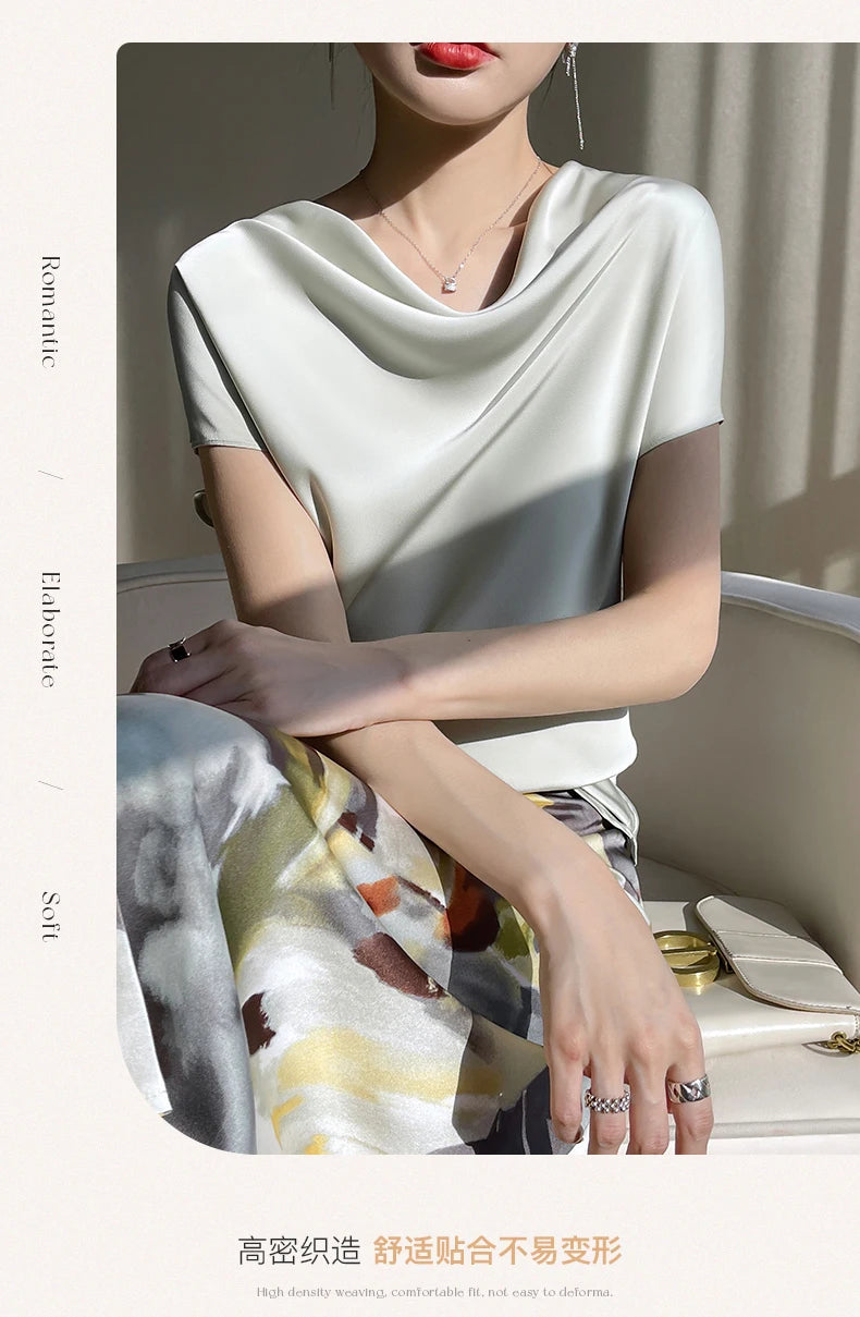 Silk Women's T-Shirts Summer Crew Neck Short Sleeve Tees Casual Solid Color Bottom T-Shirt Loose Female Tops Pullover Clothe 5XL