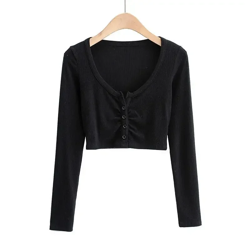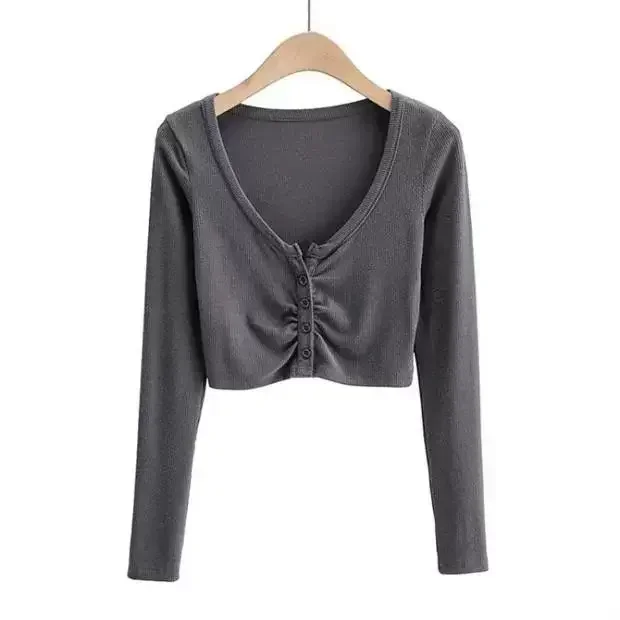 Spring Summer Women Long Sleeve Button T Shirt Female Solid Slim Sexys Casual Tee Shirt Femmes Y2k Clothes Streetwear Crop Tops