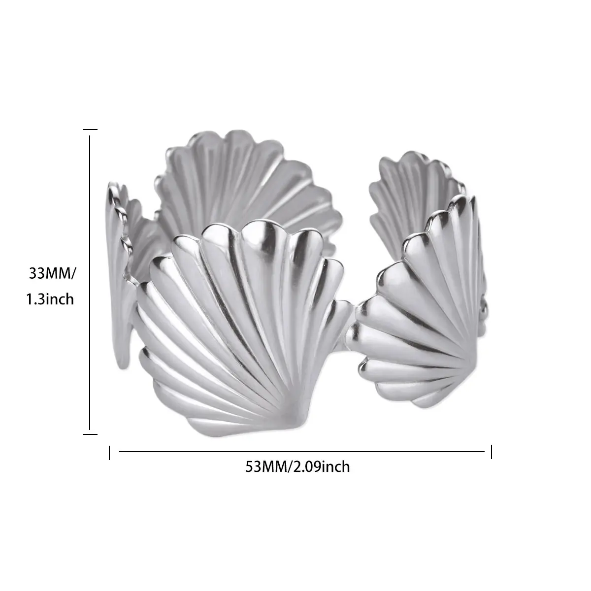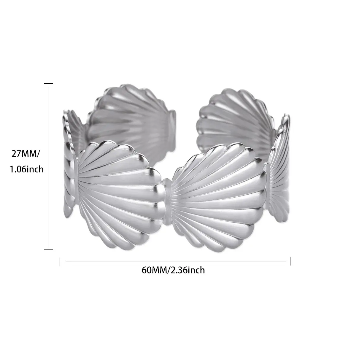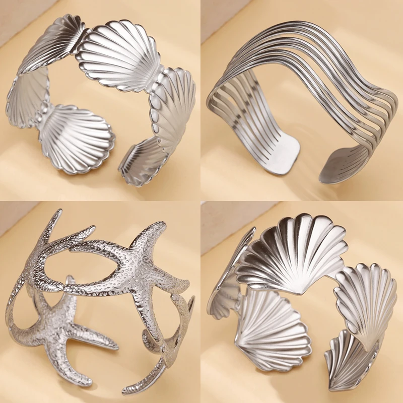 Stainless Steel Shell Bangles for Women Fashion Layered Wave Starfish Cuff Bangle Bracelet Femme Waterproof Jewelry New In