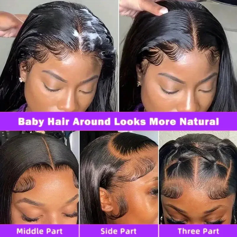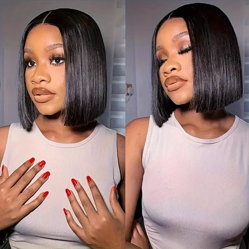 Straight Bob Wig 200% Density 13X4 Lace Frontal Wigs Brazilian Pre Plucked With Baby Hair 4x4 For Women 100% Human Hair Wigs #1B