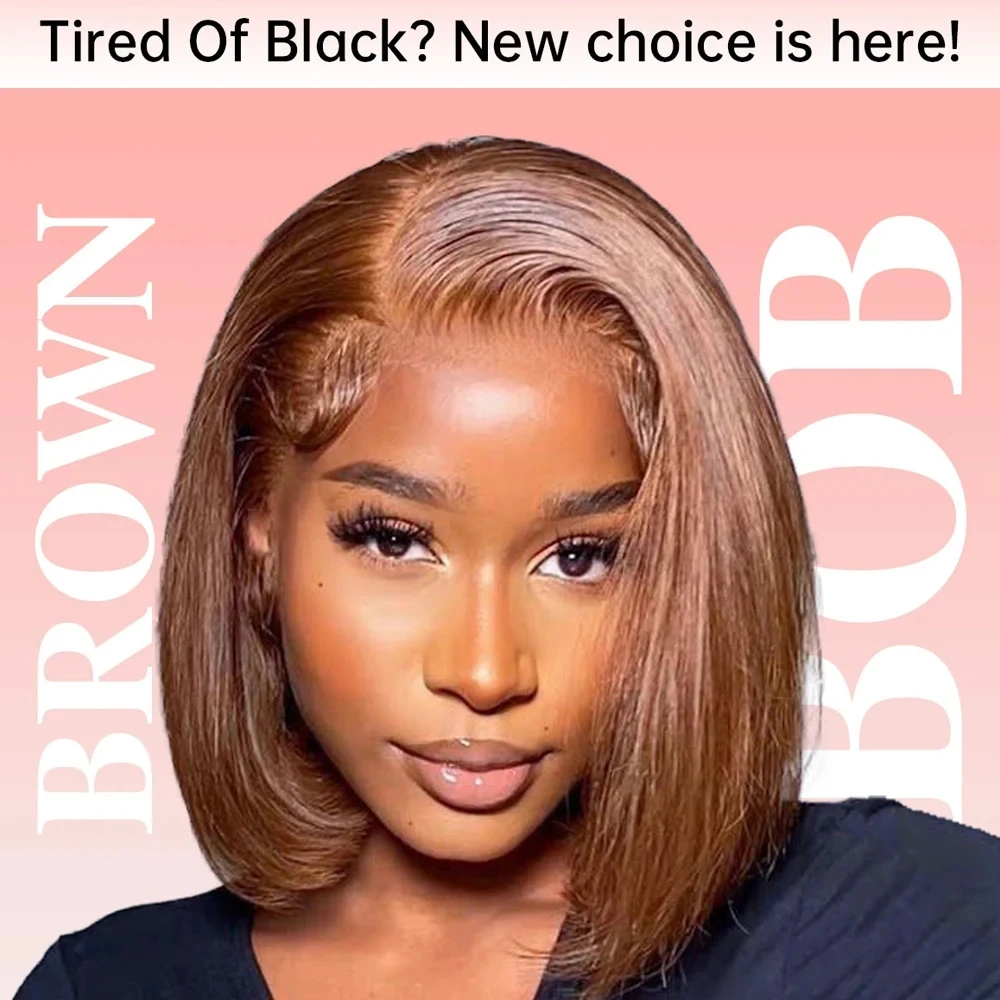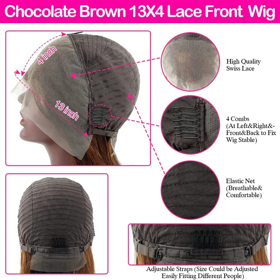 Straight Bob Wigs Chocolate Brown Colored 100% Real Human Hair 13x4 Lace Front Wigs Brazilian Remy Hair Pre Plucked Hairline