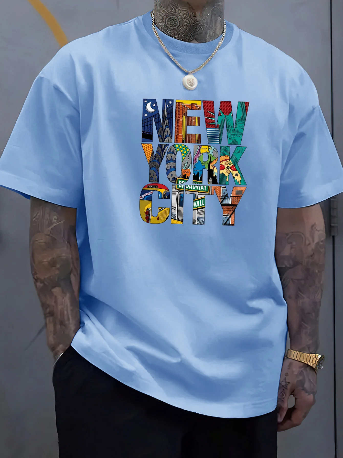 Summer Men 100% Polyester Comfortable Casual Loose Plus Size NEW YORK CITY Printed Sports Round Neck Short Sleeved T-shirt Top