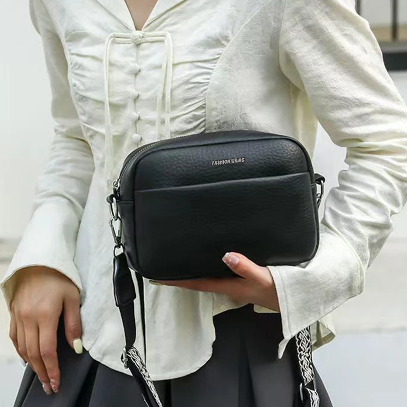 Unisex Canvas Crossbody Bag – Stylish Square Camera Purse with Wide Strap, Minimalist & Versatile for Men/Women. Casual Chic, Ne
