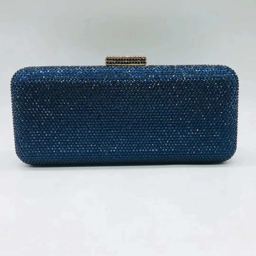 Wedding Party Blue Black Red Gold Silver Purse Diamond Banquet Cocktail Dinner Handbag Woman Crystal Rhinestone Prom Evening Bag