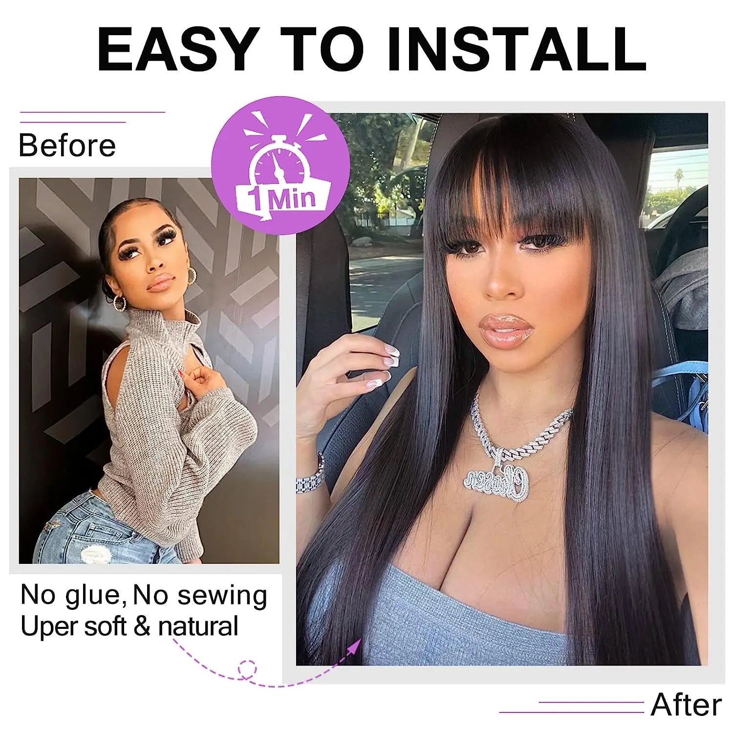-- 💘 Save Money & Time : Glueless, Perfect For Lazy Girls and Beginners, 2 Minutes Quick Install, Quick Out Of Door.