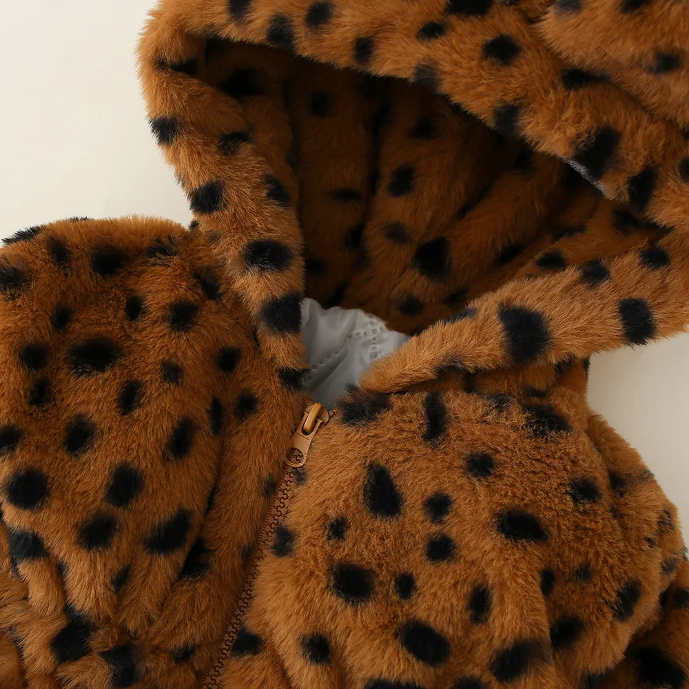 Winter Girls Leopard Pattern Sweater New Cotton Clothes Rabbit Ear Hooded Zipper Waistband Children's Clothing