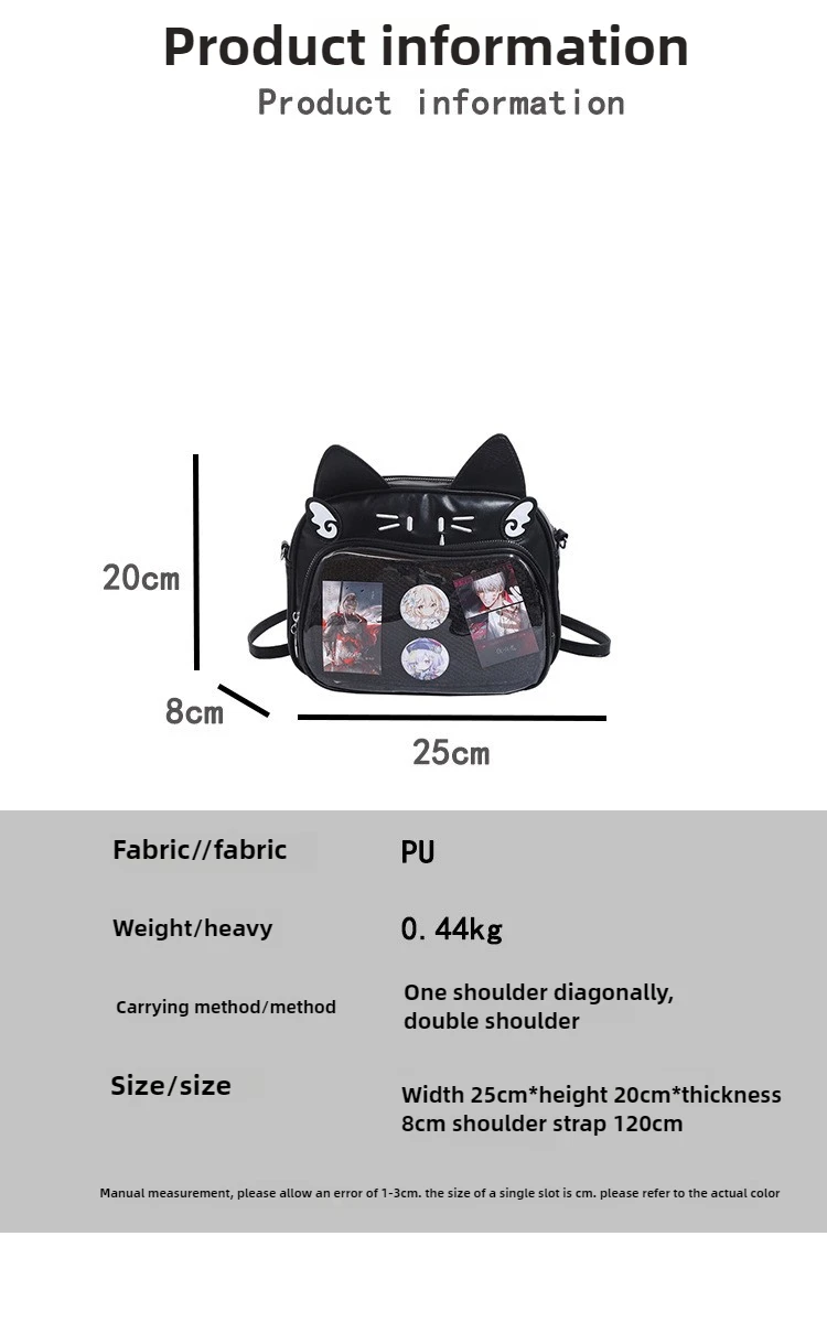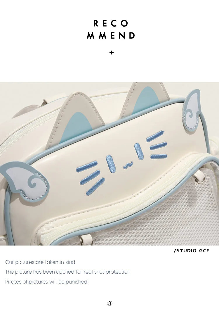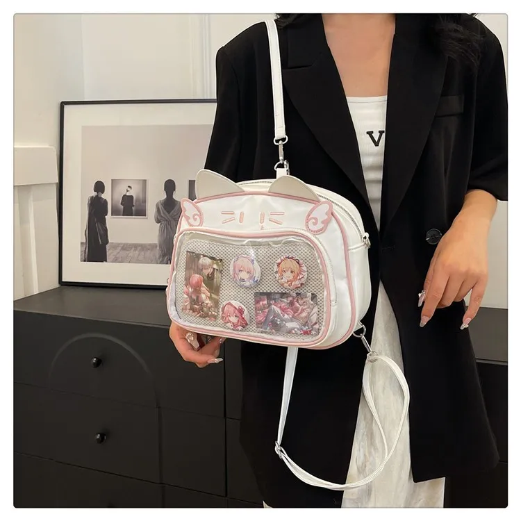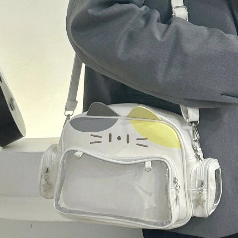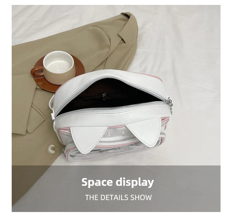 Women's Fashion Backpacks Y2K Korean Japan Kawaii Cat Ita Bag PU Cute Girls Transparent Pocket Aesthetic Shoulder Crossbody Bags