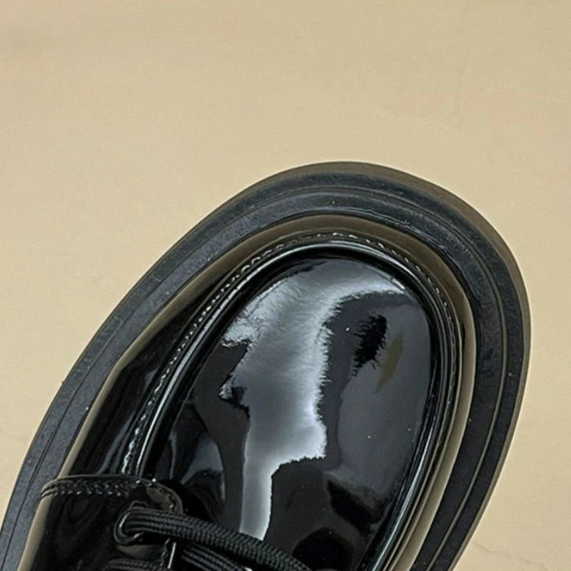 Women's Shoes Platform Flats Autumn Black Loafers Fashion Comfortable Leather Shoes Lace-up Outdoor Casual Oxfords Zapatos Mujer