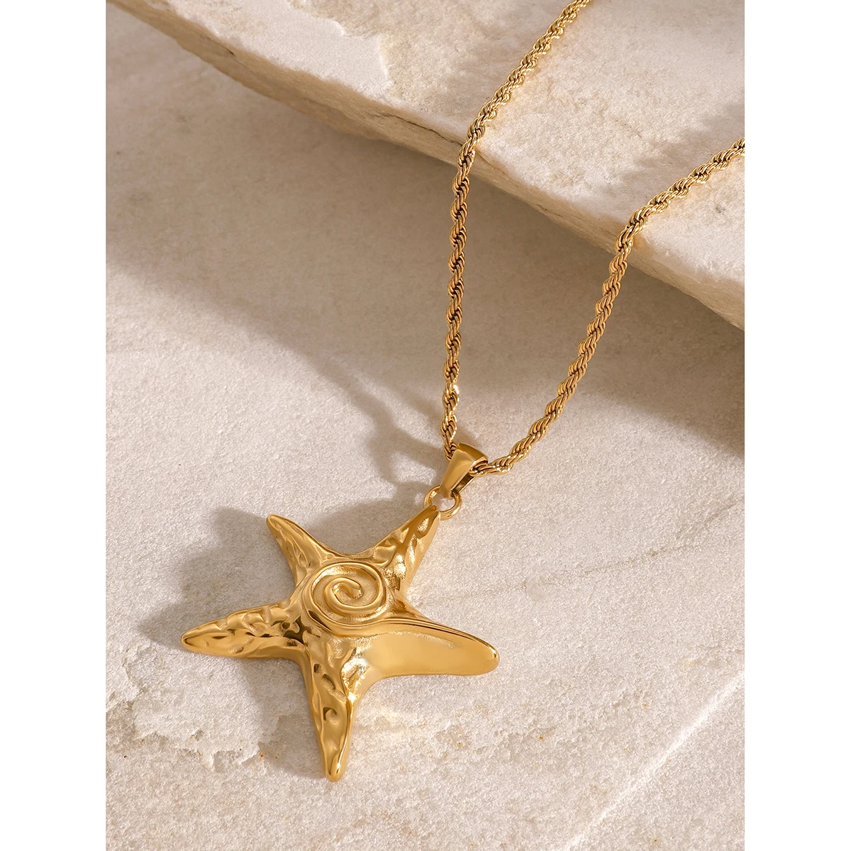Youthway Threaded Starfish Stainless Steel Pendant Necklace 18K Gold Plated Waterproof Fashion Jewelry New For Women Men